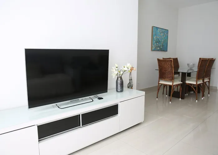 El interior, complementado con TV y TV de pantalla plana con canales vía satélite, además de ventanas insonorizadas, consta de un balcón y una zona de comedor. El apartamento ofrece mobiliario cómodo, incluyendo un escritorio. Esta propiedad cuenta con 3 dormitorios. Disfruta de la comodidad del baño del apartamento, equipado con toallas de baño.